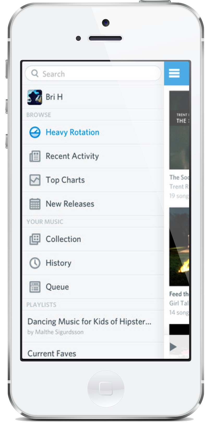 Music service Rdio released an updated version of its iOS app. The update brings a revamped interface with slide side navigation.
