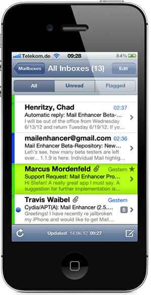 Jailbreakers have a great option to tweaked around Apple's Mail app. A long time ago, when I had my iPhone 4 jailbroken, I used Mail Enhancer to bring some features that the Mail app was missing. Nowadays I use Sparrow as my Mail app, but Mail Enhancer continues to be a great tweak for jailbreakers.